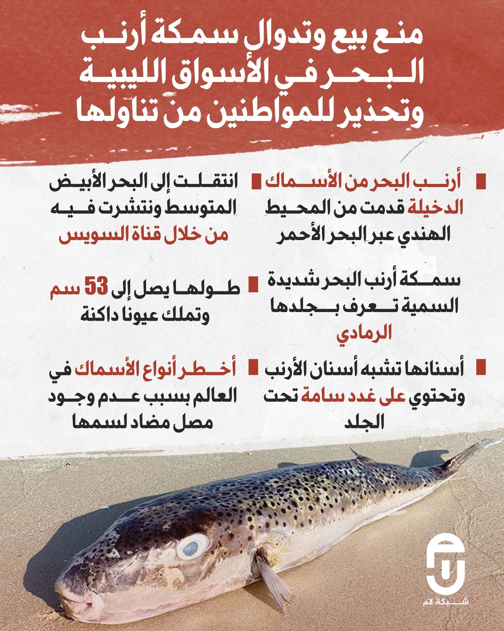 وزارة الثروة البحرية تعلن منع بيع وتداول سمكة أرنب البحر بسبب سميتها الشديدة،