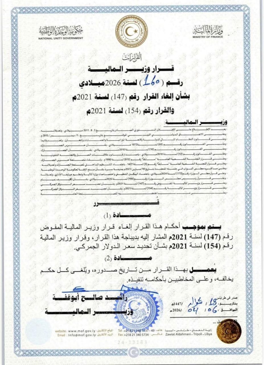 قرار بشأن تحديد سعر الدولار الجمركي