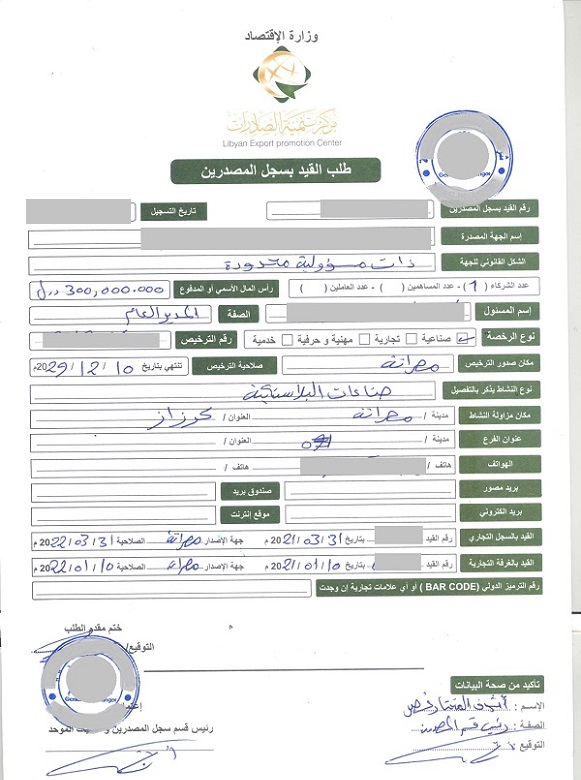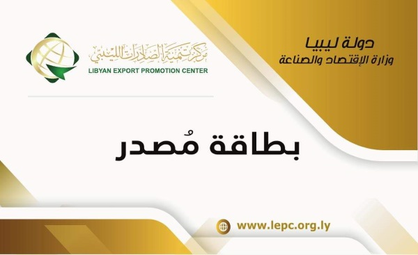 طلب الحصول على بطاقة مُصدر - الجهة المسؤولة (مركز تنمية الصادرات) العنوان : جنزور - طرابلس رقم الهاتف: +218 21 489 8715 البريد الالكتروني: info@www.lepc.org.ly الموقع الالكتروني: www.lepc.org.ly
